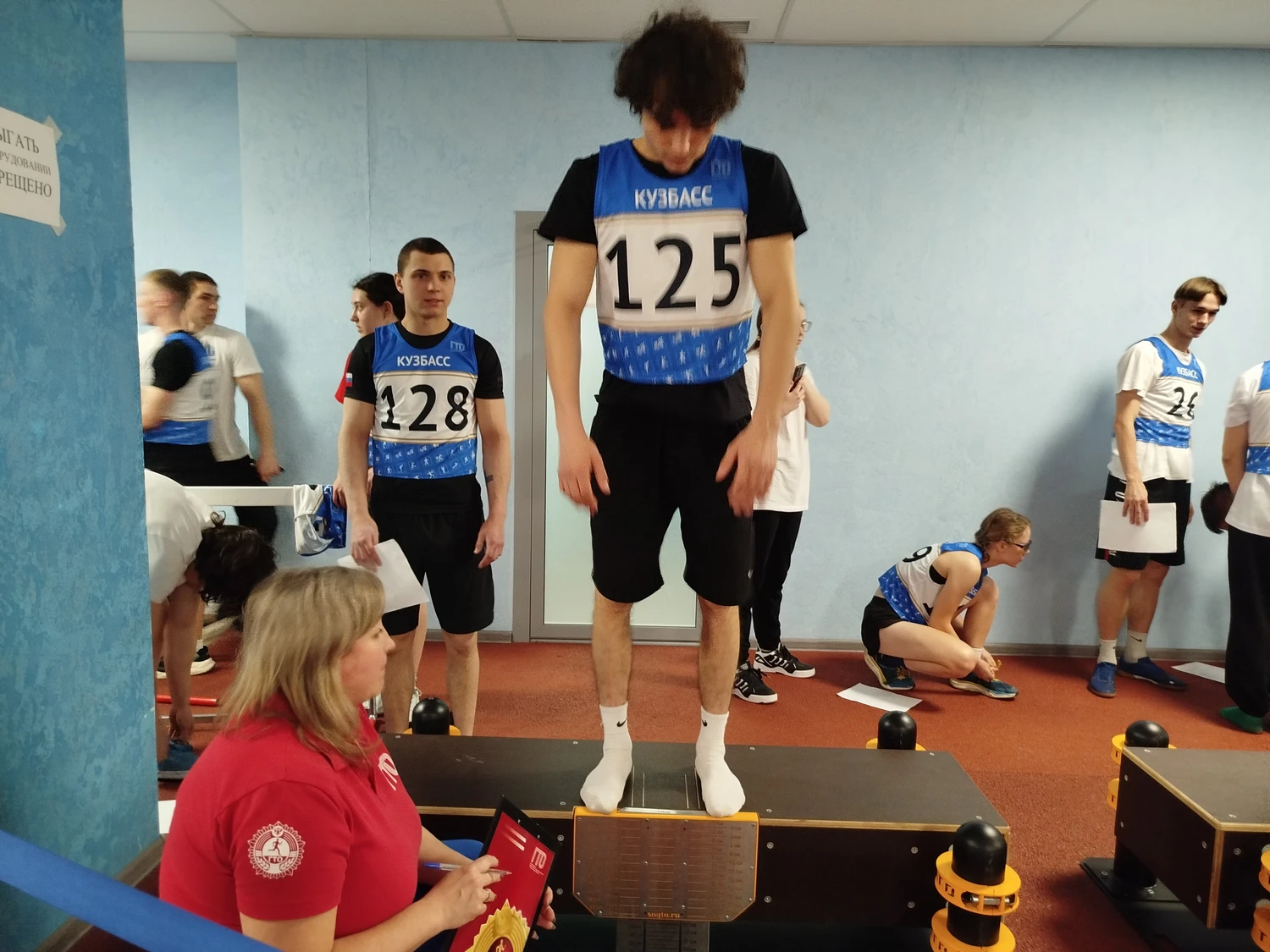 Киселевский городской округ представляет команда Киселевского педагогического колледжа. Программа фестиваля включала часть испытаний комплекса ГТО: бег на 60 м; поднимание туловища из положения лежа на спине (кол-во раз за 1 мин.); подтягивание из виса на высокой перекладине; сгибание и разгибание рук в упоре лежа на полу; прыжок в длину с места толчком двумя ногами; наклон вперед из положения стоя на гимнастической скамье; бег на 2 000м; бег на 3 000 м и плавание на 50м.  $IMAGE9$